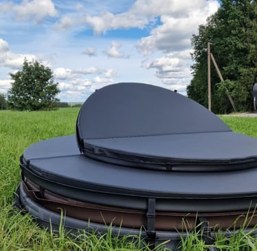 We produce high-quality lids for hot tubs! Thermal lids perfectly protect the water from leaves, insects, shorten the heating time of the hot tub and help maintain the desired water temperature longer. We offer various sizes and different shapes and colors so that each customer can find what best suits their needs.